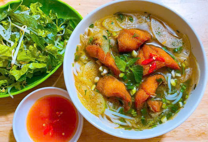 Bún, chả nướng, rau sống, nước mắm mix, đu đủ, cà rốt.